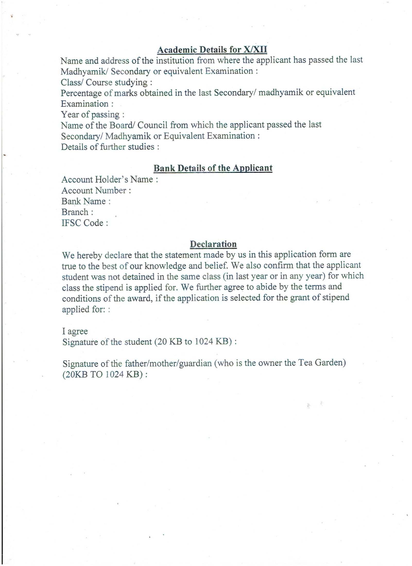 അപേക്ഷകന് അഞ്ച് ഏക്കറിൽ താഴെ മാത്രം തേയില കൃഷി ഉണ്ടായിരിക്കുകയും അത് ടി ബോർഡിൽ രജിസ്റ്റർ ചെയ്ത സ്മാർട്ട് കാർഡ് വാങ്ങിയിട്ടുള്ളതുമായിരിക്കണം.